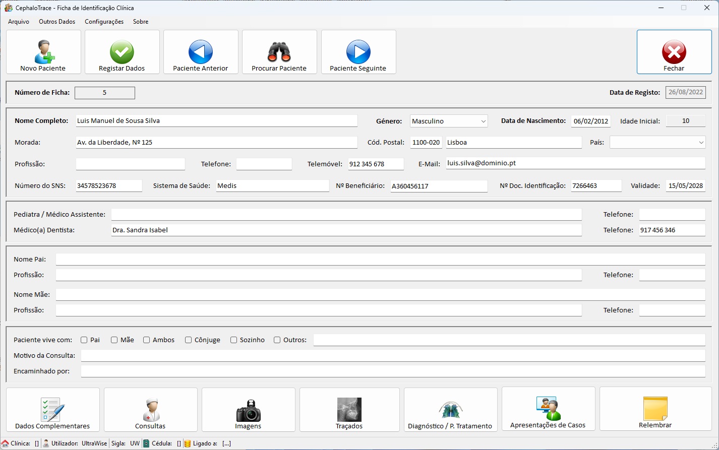 O CephaloTrace foi desenvolvido para cada médico registar os seus casos e respetivos estudos. Neste sentido, a base de dados do programa fica alojada localmente no computador onde foi instalado e registada a licença de utilização. Isto faz com que a utilização de licenças diferentes do programa instaladas noutros computadores não partilhem os dados entre si.